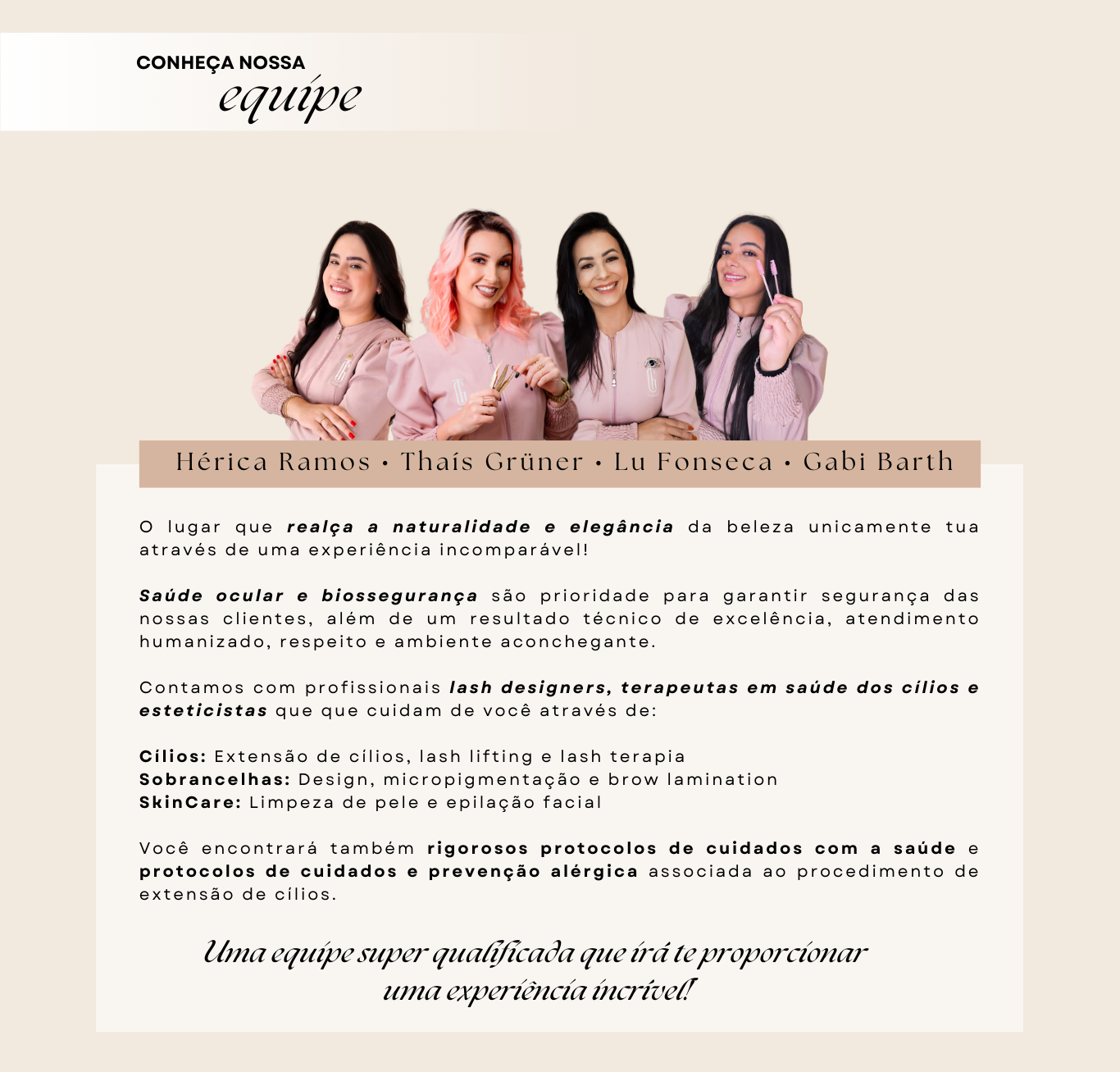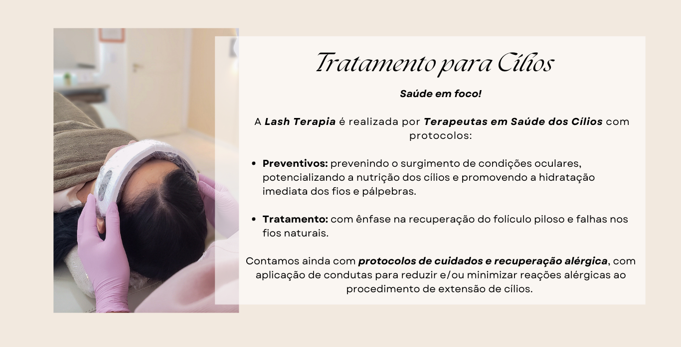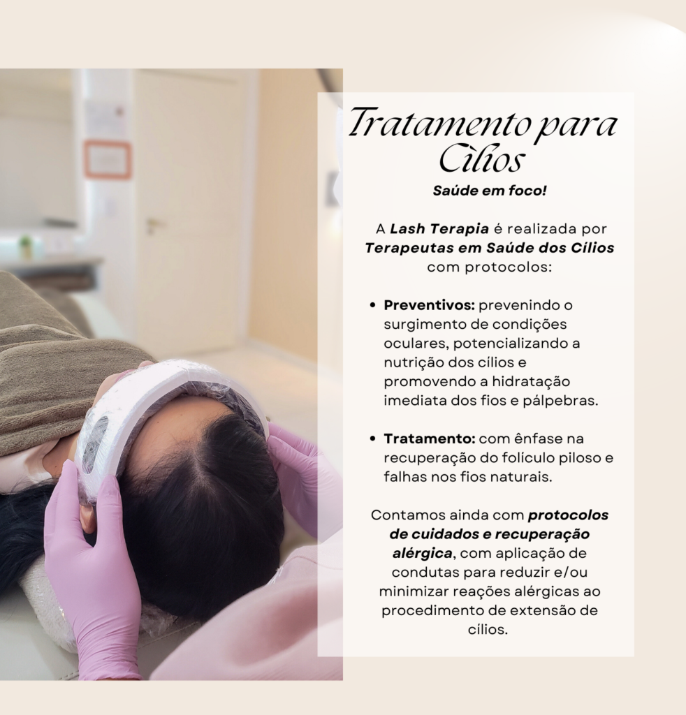 O cuidado com a saúde dos cílios e dos olhos é prioridade, e nosso objetivo é manter esta região saudável. E por isso contamos com os procotolos de lash terapia e profissionais especialistas em cuidar da saúde dos cílios com toda a segurança.
